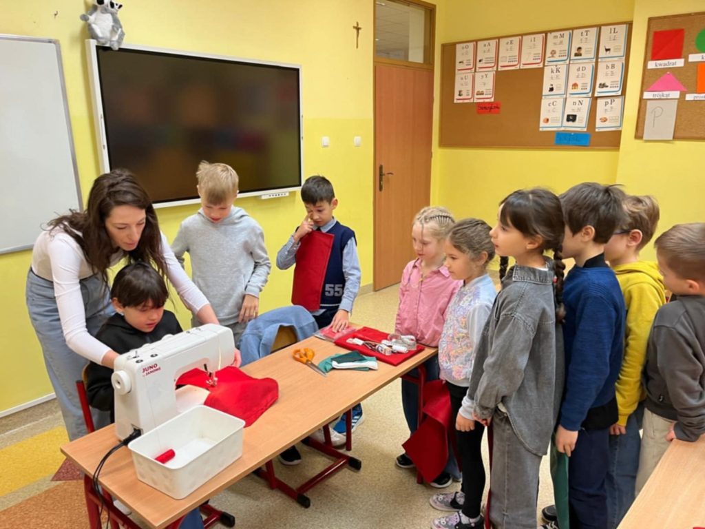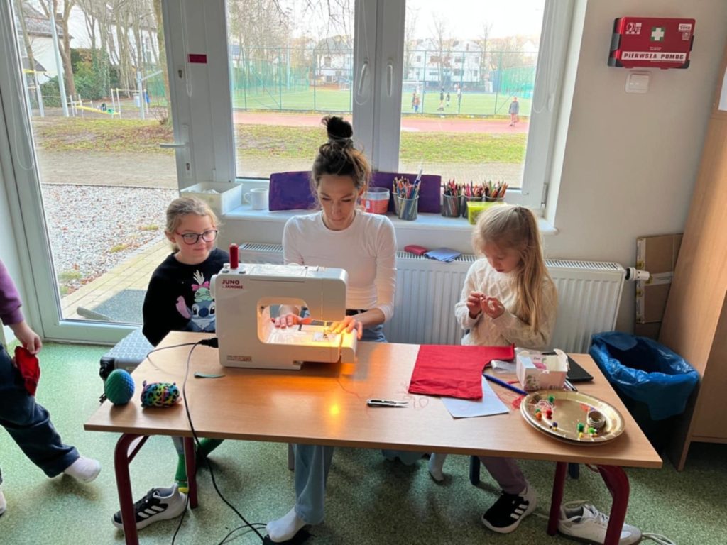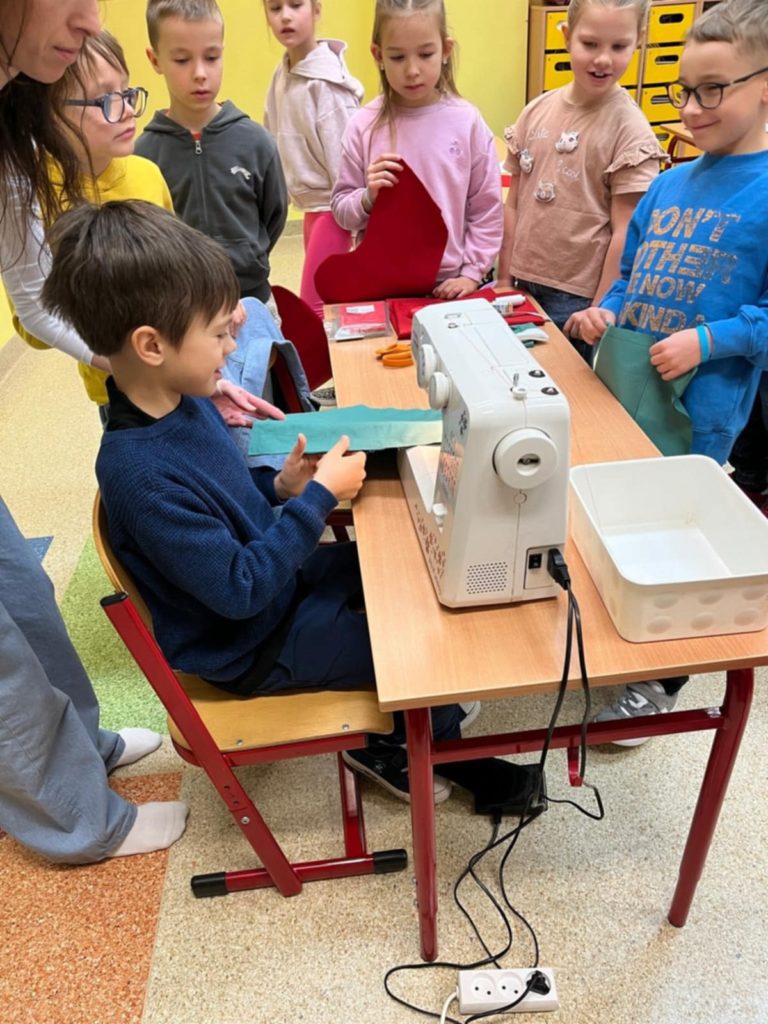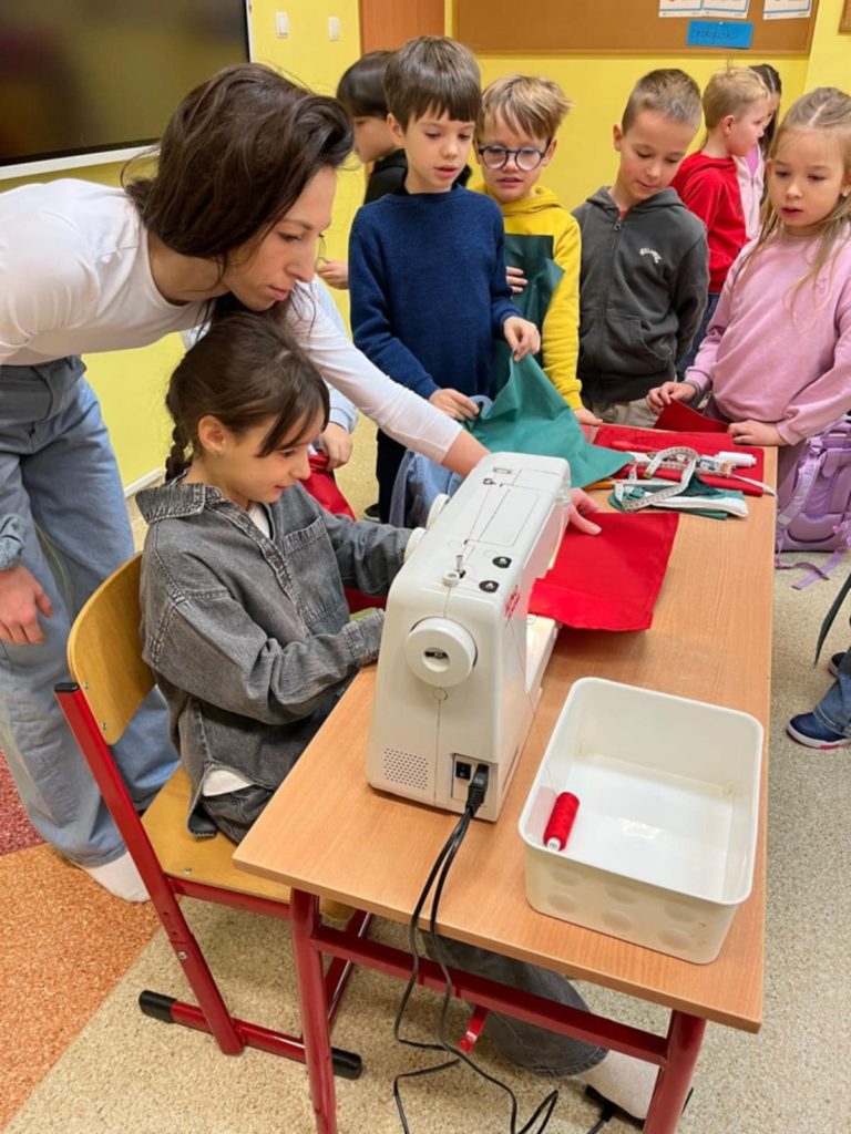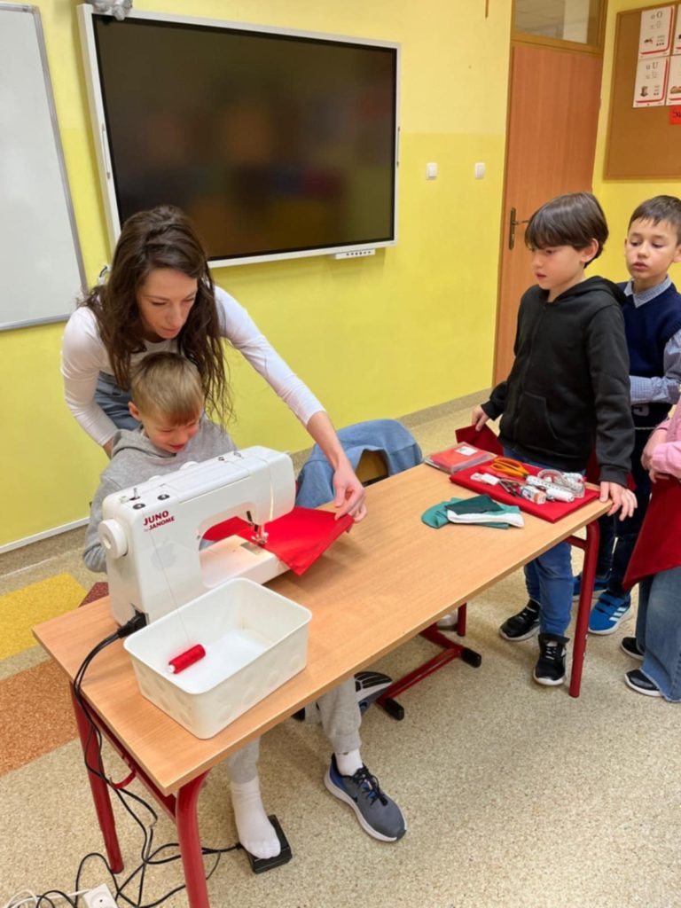 Z inicjatywy świetlicy szkolnej odbyły się wyjątkowe warsztaty szycia świątecznej skarpety. Zajęcia cieszyły się ogromnym zainteresowaniem — dzieci były zachwycone możliwością własnoręcznego wykonania ozdoby, a dla wielu była to pierwsza okazja, by usiąść przy prawdziwej maszynie do szycia!