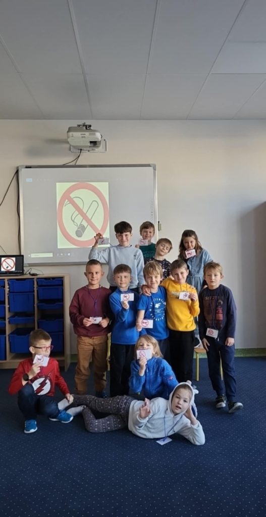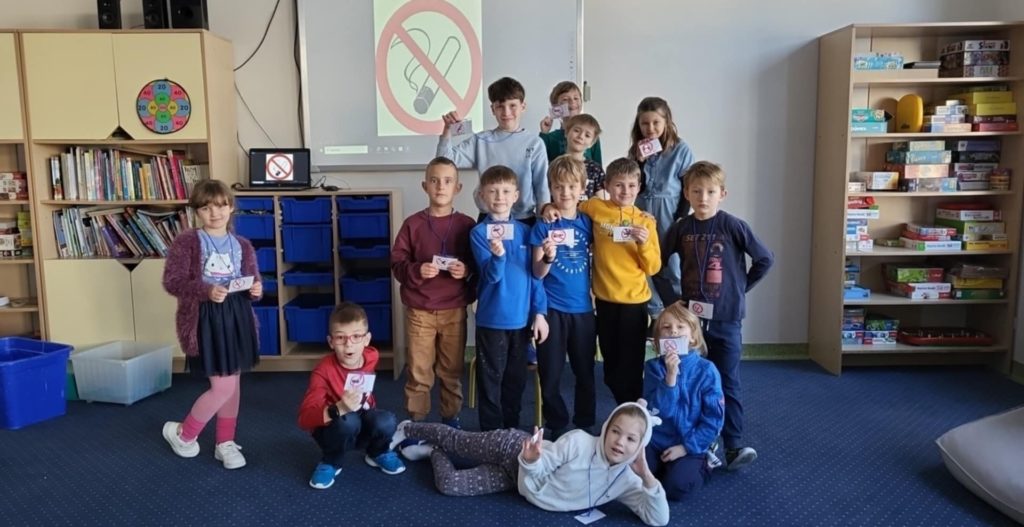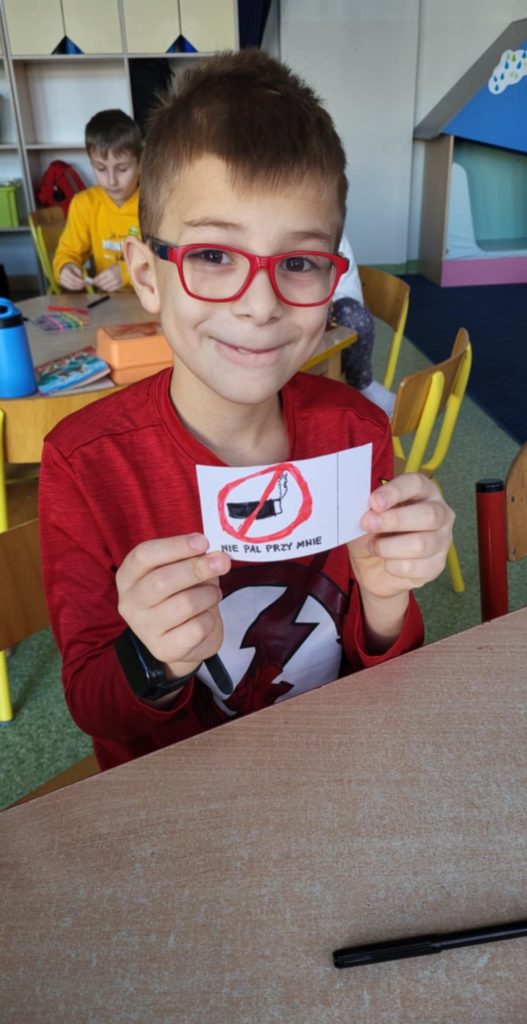W roku szkolnym 2024/2025 w świetlicy realizowaliśmy program “Czyste Powietrze Wokół Nas”, którego organizatorem jest Główny Inspektorat Sanitarny. Program miał na celu zwiększenie świadomości dzieci na temat szkodliwości dymu tytoniowego i zanieczyszczeń powietrza. Uczniowie klas I–III aktywnie uczestniczyli w zajęciach edukacyjnych, zabawach i działaniach plastycznych, ucząc się, jak dbać o środowisko i zdrowie swoje oraz innych. Program cieszył się dużym zainteresowaniem i przyczynił się do kształtowania prozdrowotnych i ekologicznych postaw wśród najmłodszych.