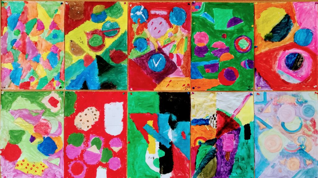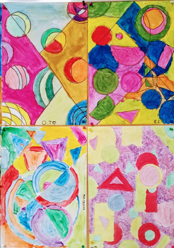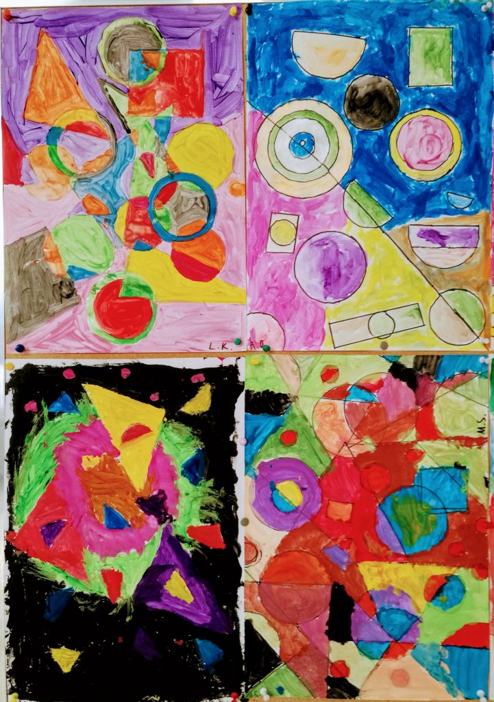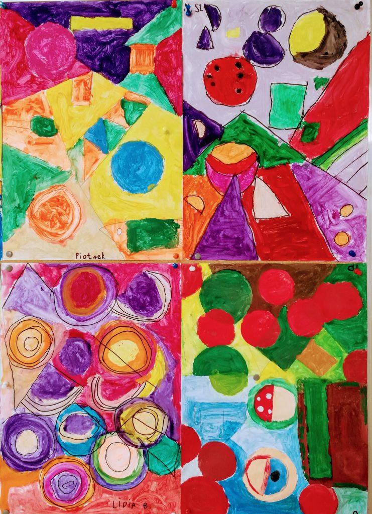 Klasa 3c tworzyła geometryczne abstrakcje. Wyróżnia je wolność i swoboda tworzenia. Obrazy są nieoczywiste, pobudzają wyobraźnię i skłaniają do ciekawych interpretacji. Zapraszamy do obejrzenia prac naszych szkolnych artystów i odnalezienia ukrytych w nich sekretów! 😉