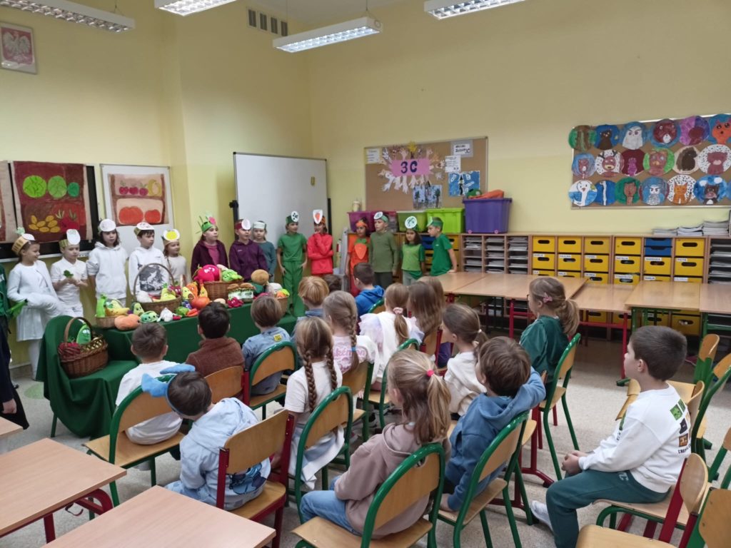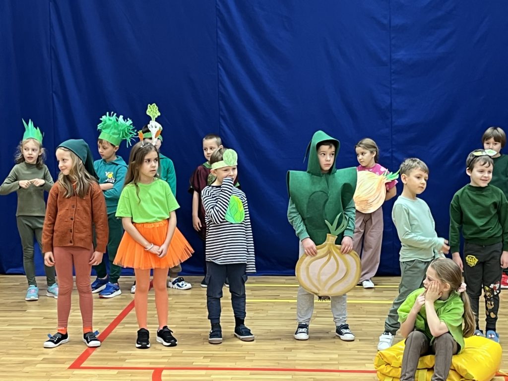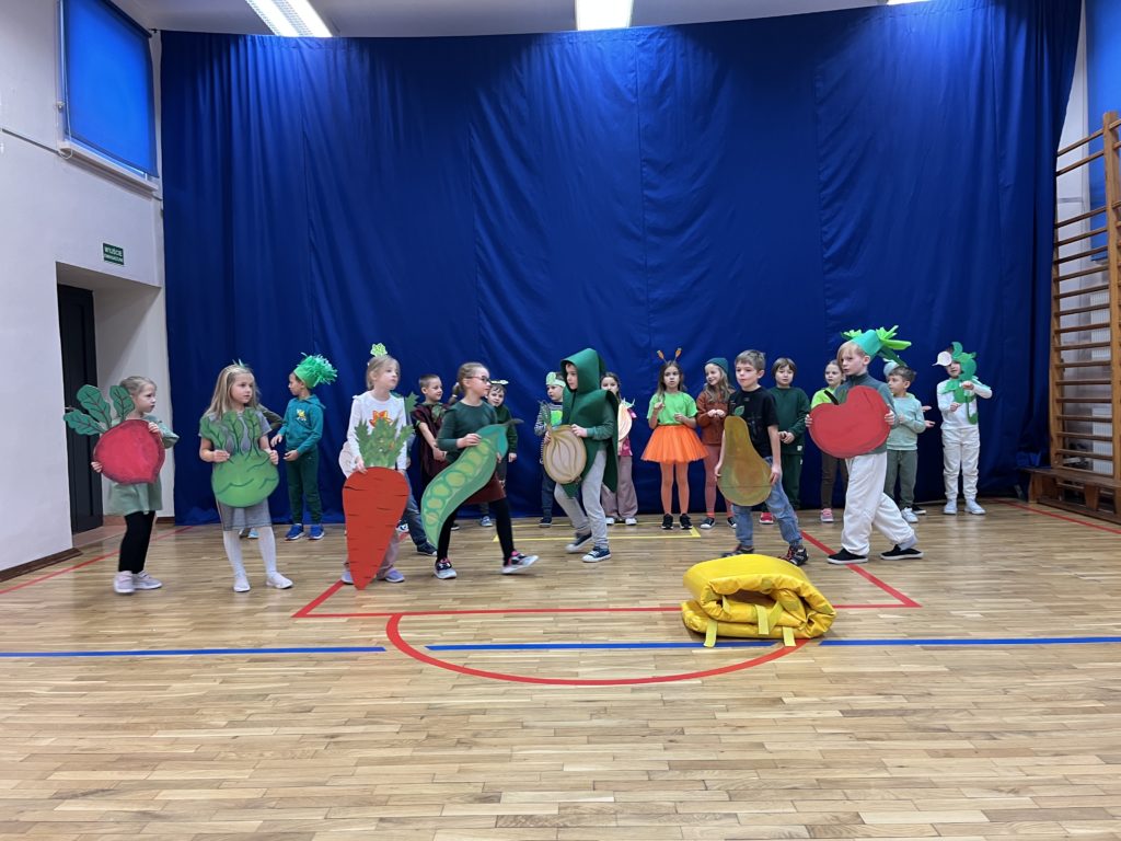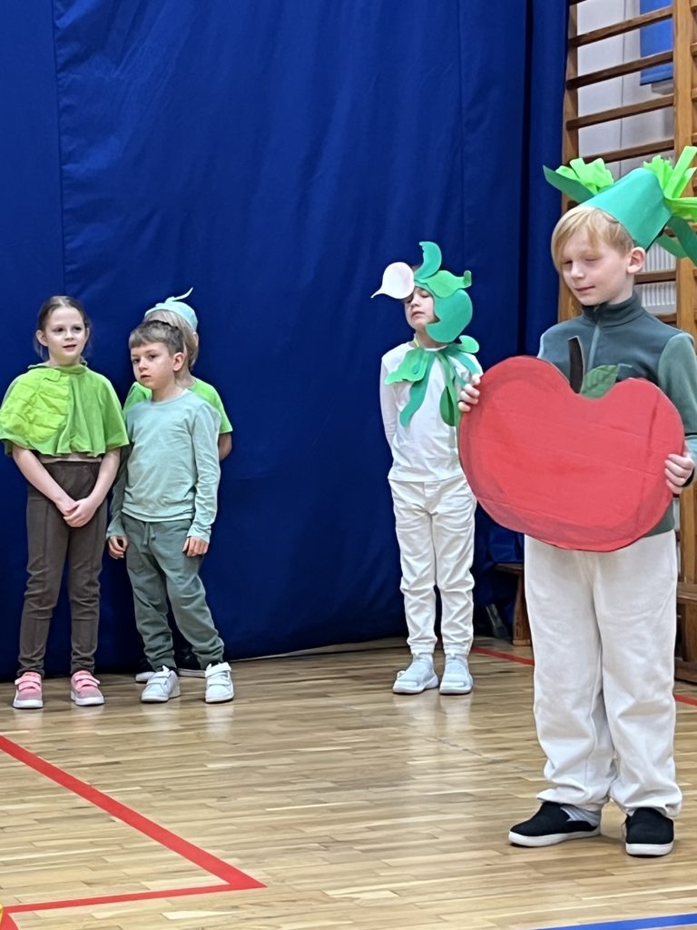 Uczniowie klas I B i II C przygotowali przedstawienie teatralne oparte na wierszu Jana Brzechwy „Na straganie”. Spektakl został zaprezentowany rówieśnikom z klas pierwszych a, b, c, drugich b i c oraz czwartej b