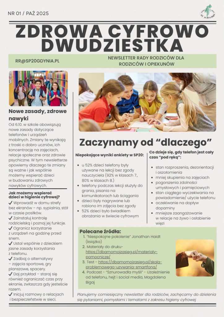 - Dyrektorze – należy przez to rozumieć dyrektora Szkoły Podstawowej nr 20 w Gdyni,