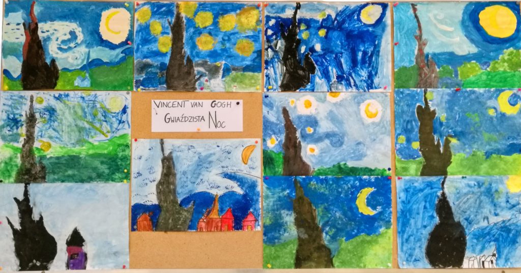 Klasa 3c realizuje projekt edukacyjny „Przygoda z wielką sztuką”. Dzieci rozwijają swoją kreatywność, tworząc prace plastyczne inspirowane dziełami znanych malarzy. Zapoznały się już z twórczością Gustava Klimta, a w listopadzie ich inspiracją był obraz Vincenta van Gogha „Gwiaździsta noc”. Przygoda ze sztuką bywa fascynująca!