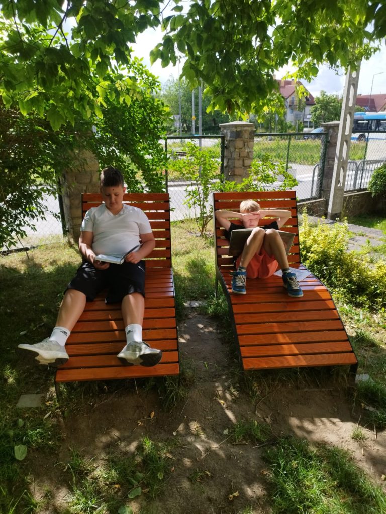 - Klasy młodsze wykorzystały piękną pogodę i wzięły udział w działaniach na rzecz projektu „Czytanie pod chmurką” – spotkali się w pięknych okolicznościach przyrody na piknikach, zajęciach sportowych i słuchali czytanych przez Wychowawców/Nauczycieli fragmentów wybranych książek.